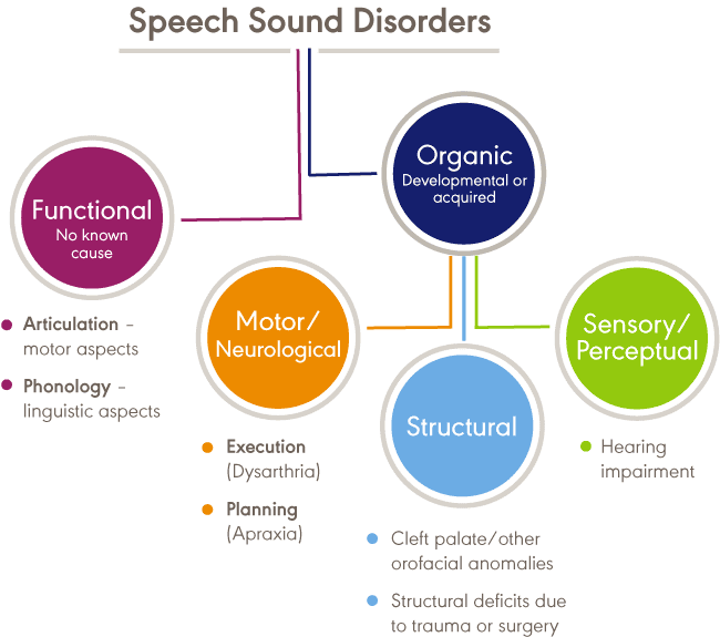 (plan/execute), a structural issue like a cleft lip or palate, or trouble hearing (perceptual/sensory).
